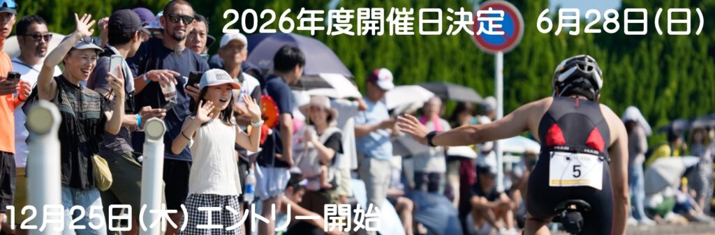 レイクハマナ実行委員会では2026年度は6/28(日)にレイクハマナ・トライアスロンを開催することを決定しました。12/25(木)にMSPOにてエントリーを開始します(MSPOエントリー オンライン https://entry.mspo.jp/?evcode=LH26)